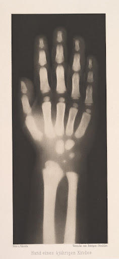 德國物理學家亨特根(Wilhelm Conrad Röntgen)1895年 在〈關於一種新的射線〉(Über eine neue Art von Strahlen)中所發表的圖像。 |